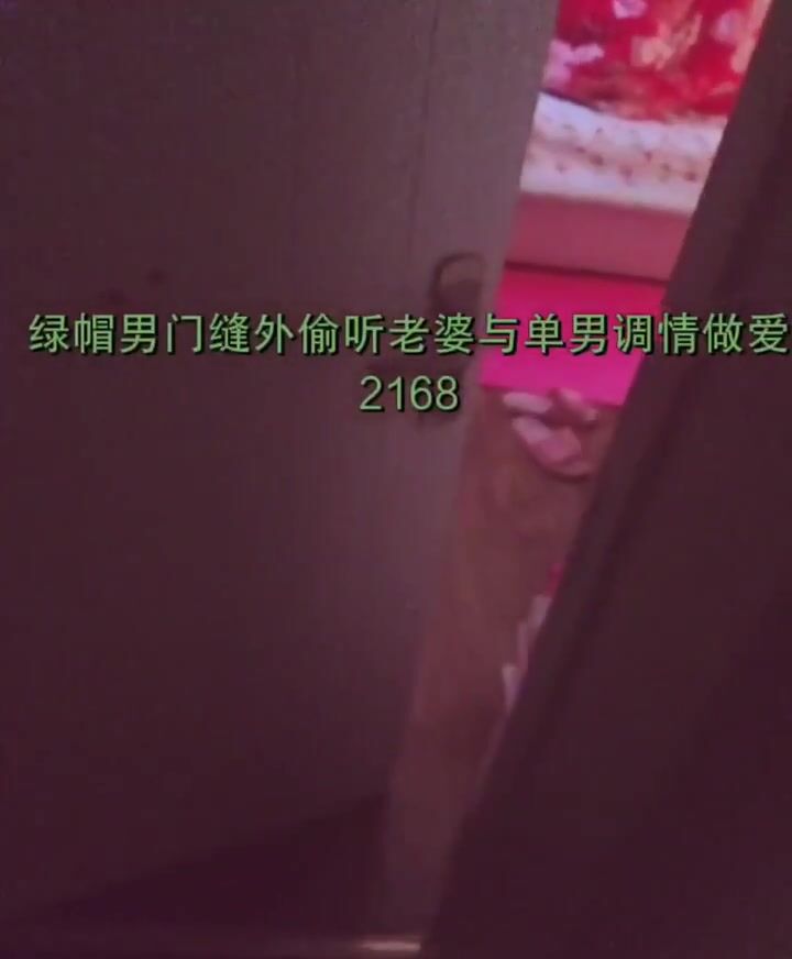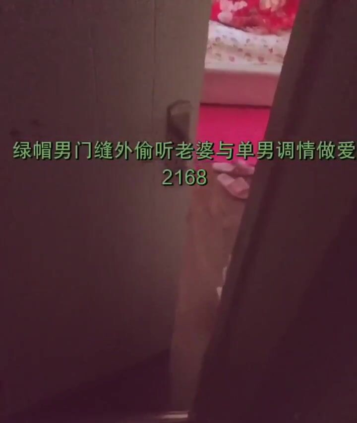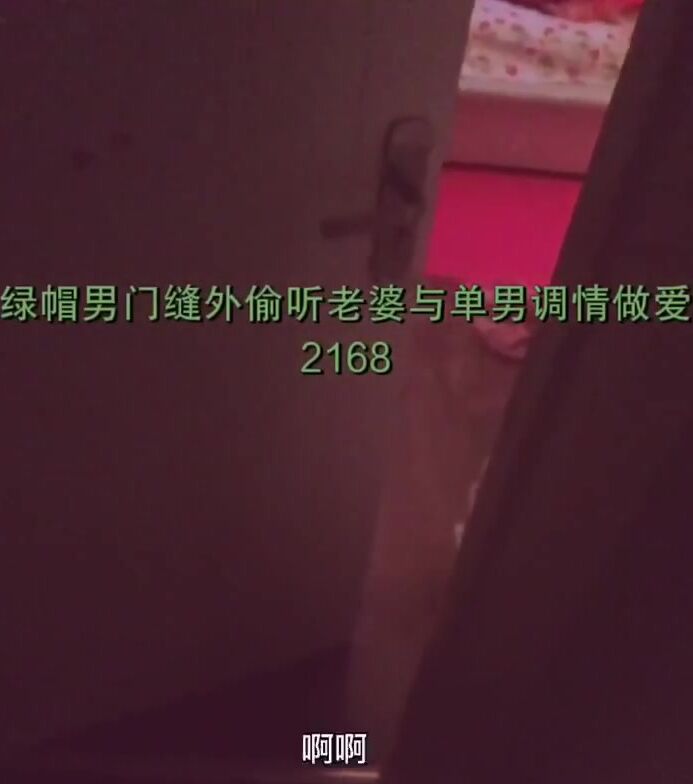 绿帽男在门缝在撸着鸡吧看老婆和单男做爱调情的