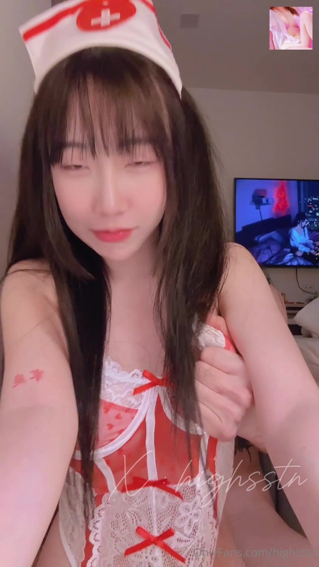 韓國模特兒「lovechuu」性感護士大戰兩肌肉男,口爆深喉毒龍調教,舔舌阿黑顏