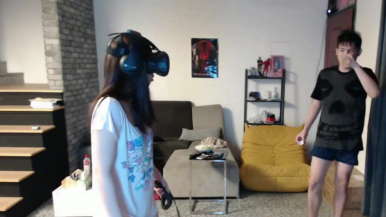 TP某知名女主播忘关摄像头,在家不穿内裤和男朋友一起玩虚拟头盔游戏